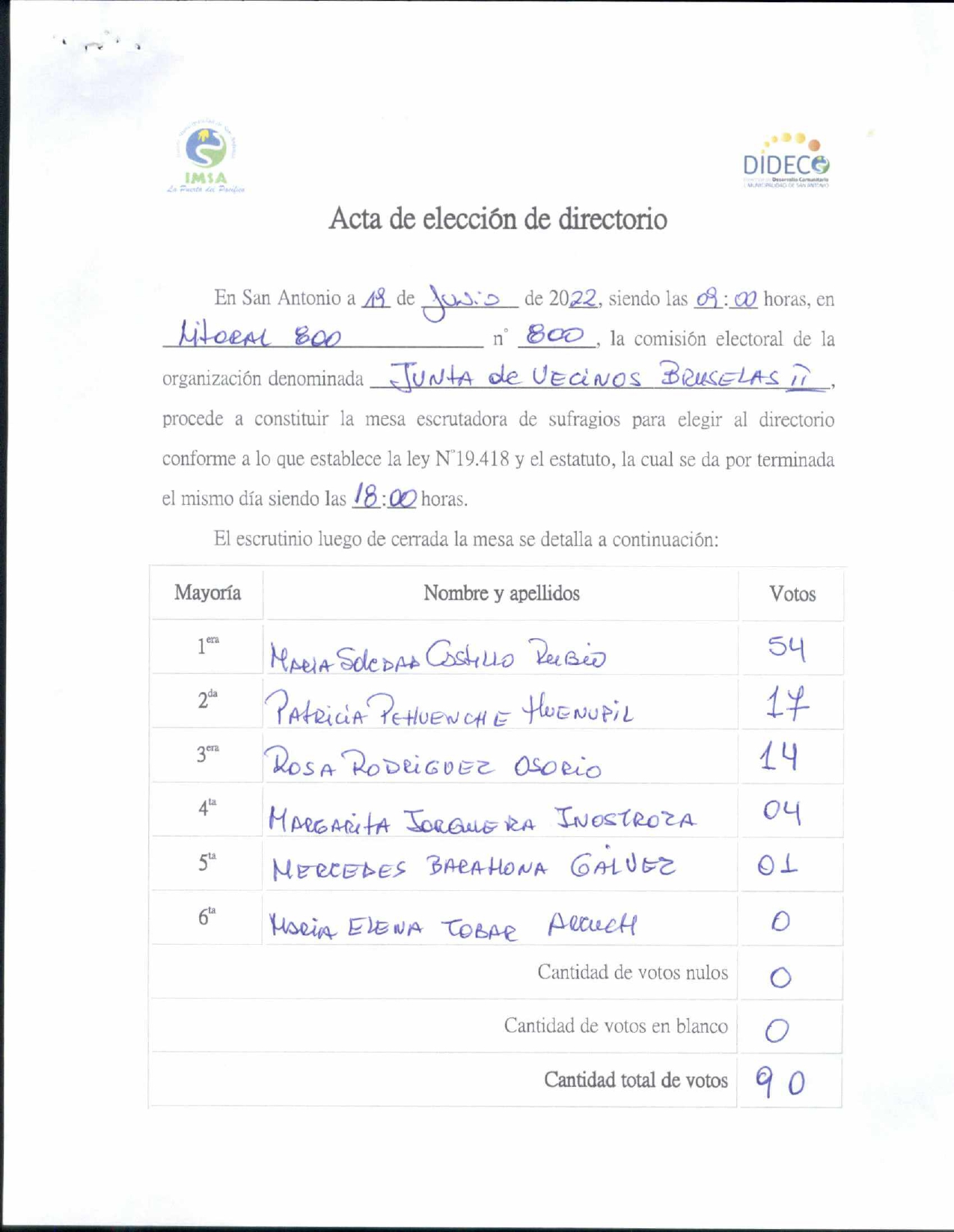 Acta de Elecciones "Junta de Vecinos Bruselas II"
