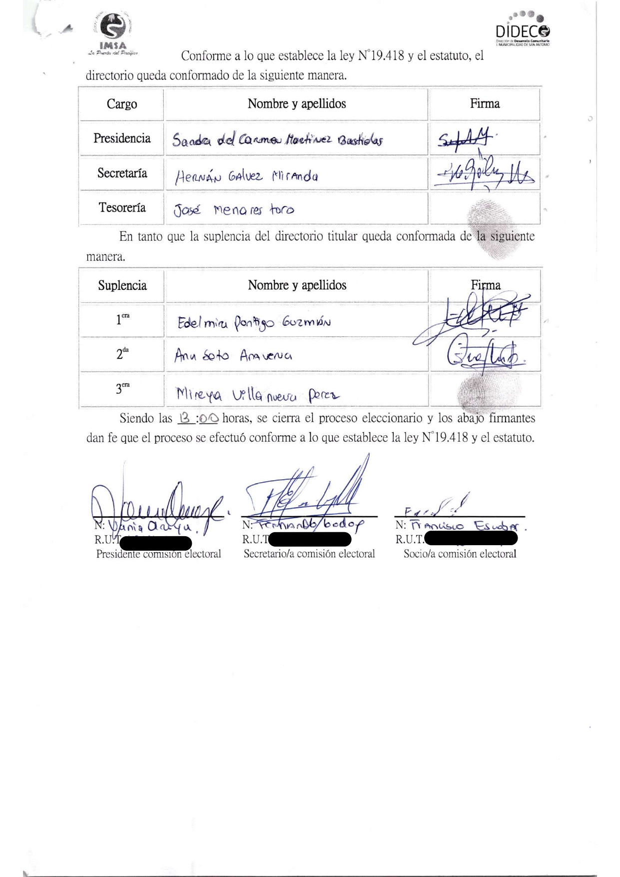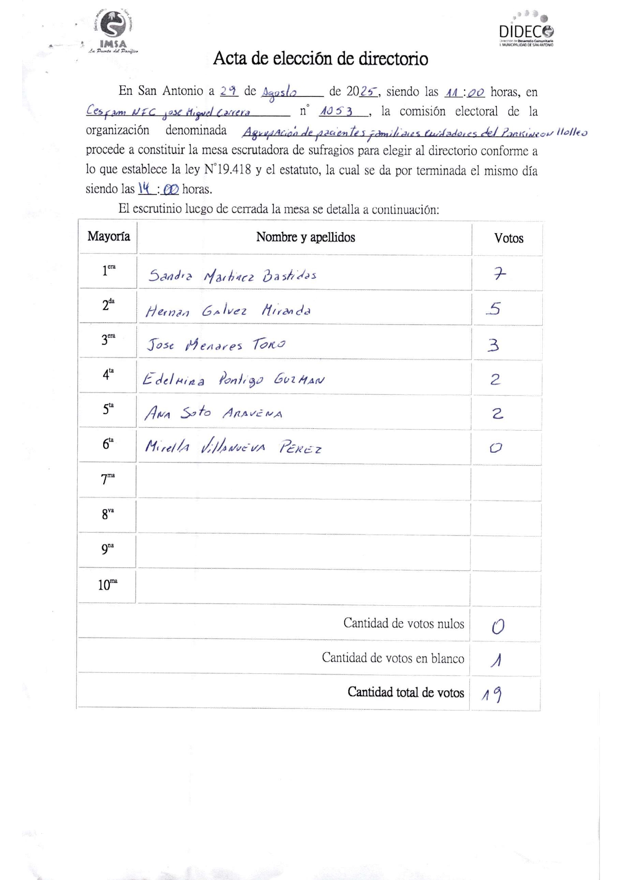Acta de elecciones AGRUPACION PACIENTES FAMILIARES Y CUIDADORES PARKINSON LLOLLEO