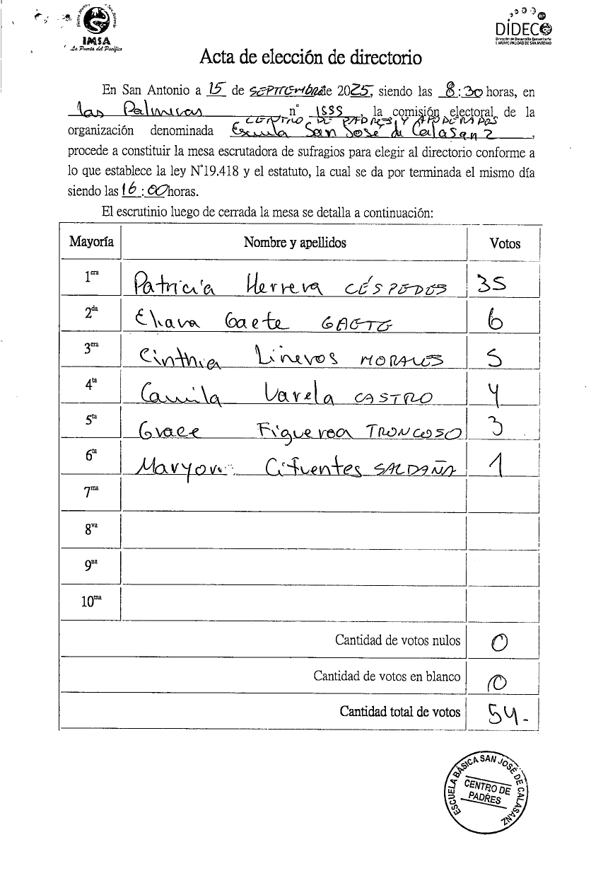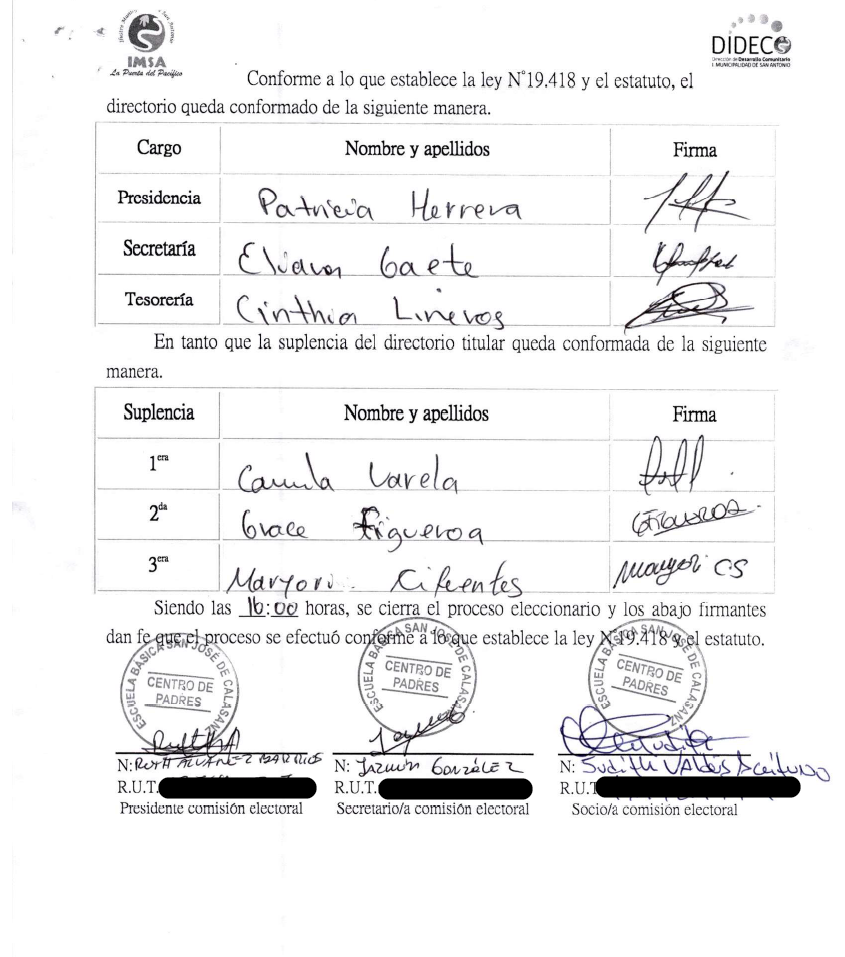 Acta Centro de Padres y Apoderados Escuela San José de Calasanz