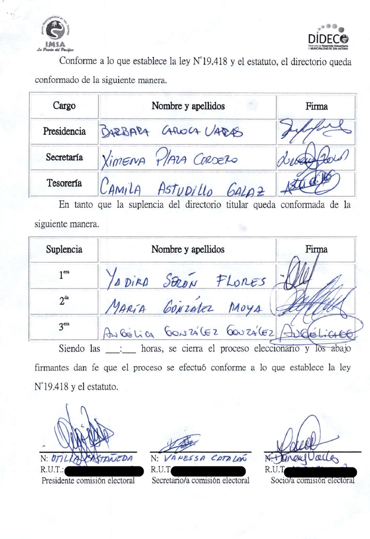 Acta Centro de Padres y apoderados Escuela Movilizadores Portuarios