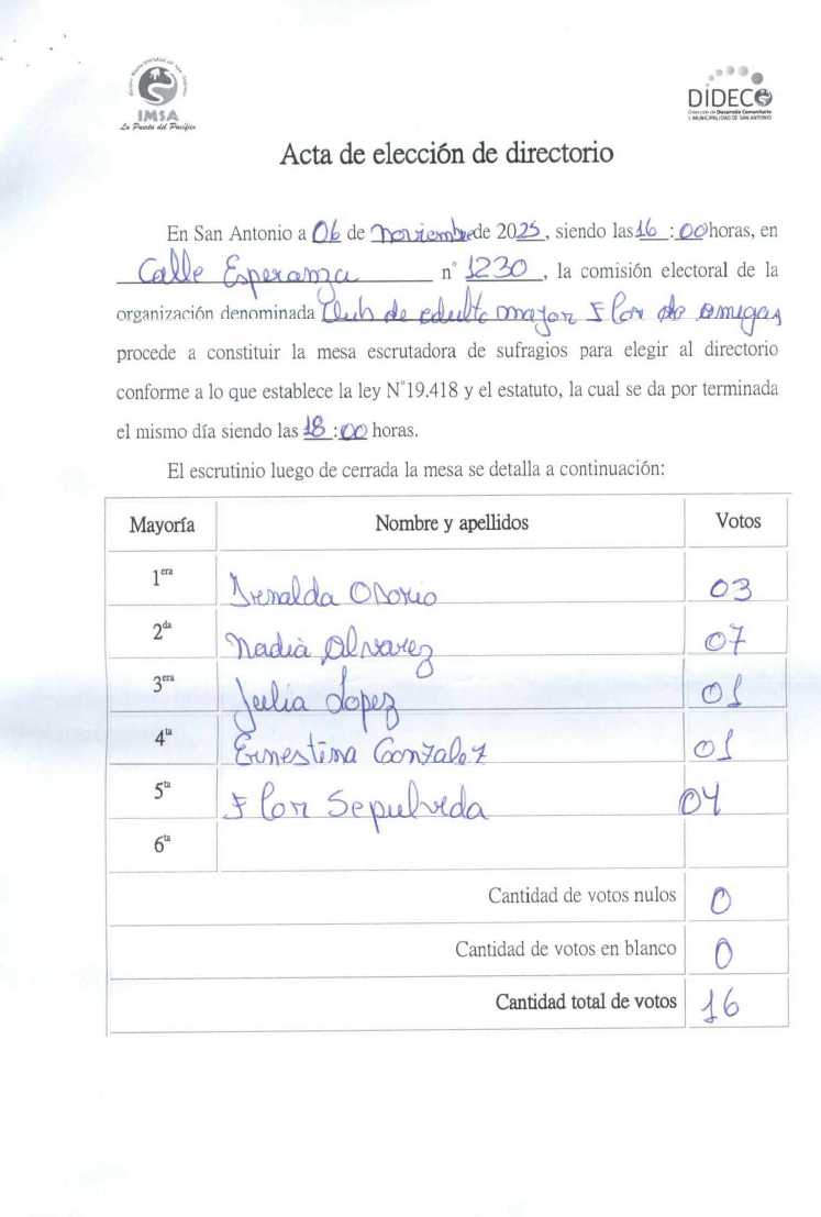 Acta Club de adulto mayor flor amigas