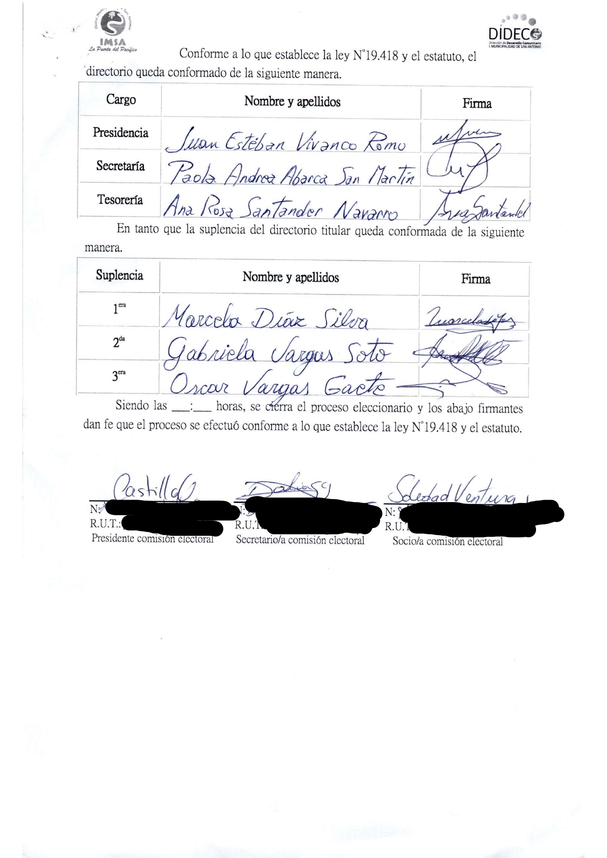 Acta de elecciones AGRUPACION SOCIAL Y CULTURAL CEPRADE