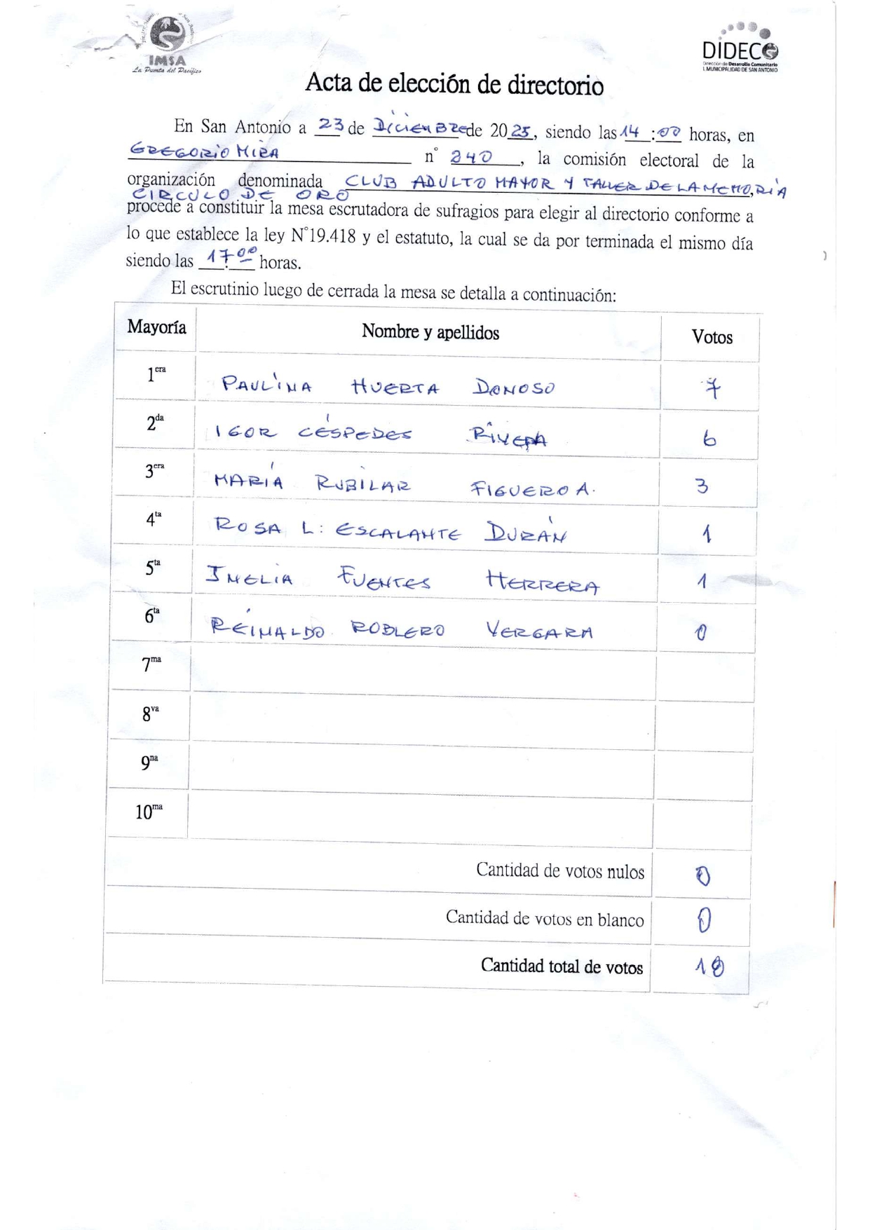Acta de eleccion CLUB DE ADULTO MAYOR Y TALLER DE MEMORIA CIRCULO DE ORO