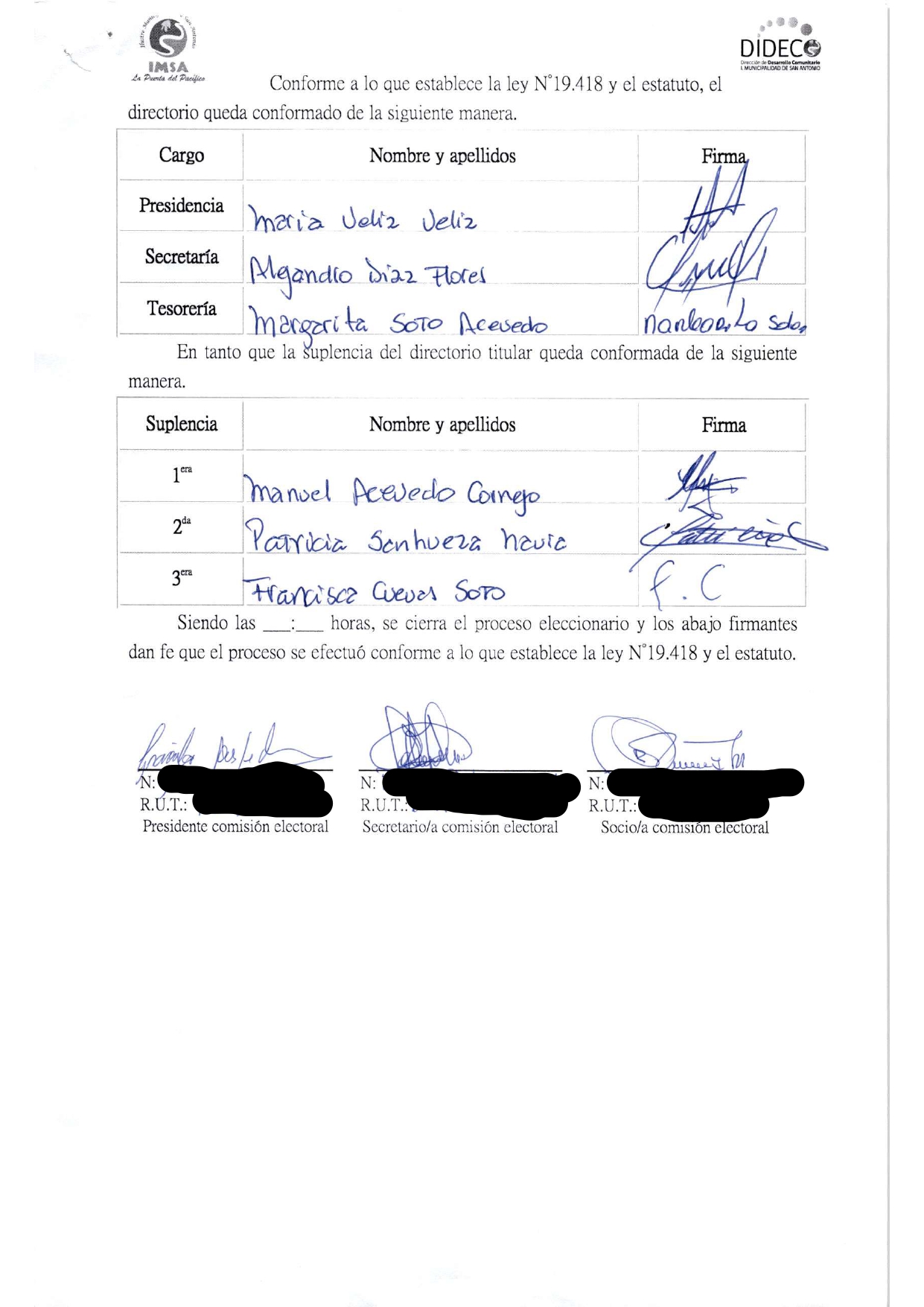 Acta de elecciones JUNTA DE VECINOS ALTOS DE BARRANCAS