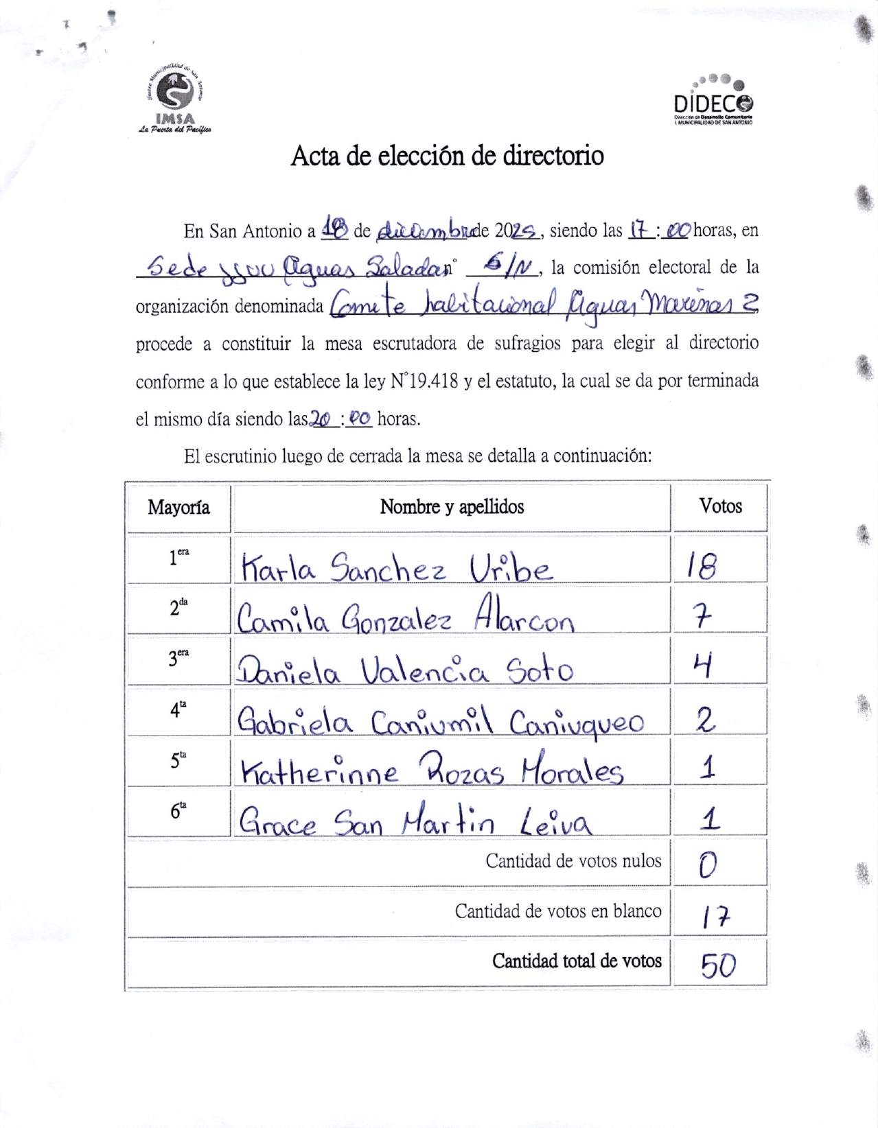 Acta de elecciones COMITE HAITACIONAL AGUAS MARINAS 2
