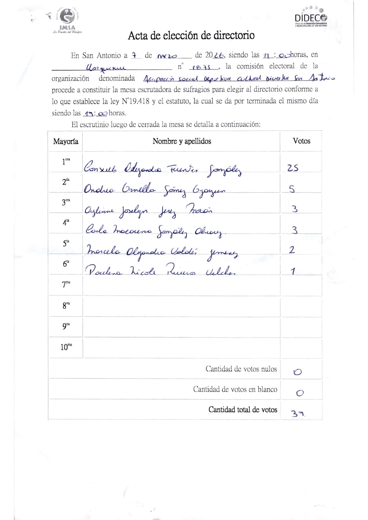 Acta de elecciones DIVERTEA