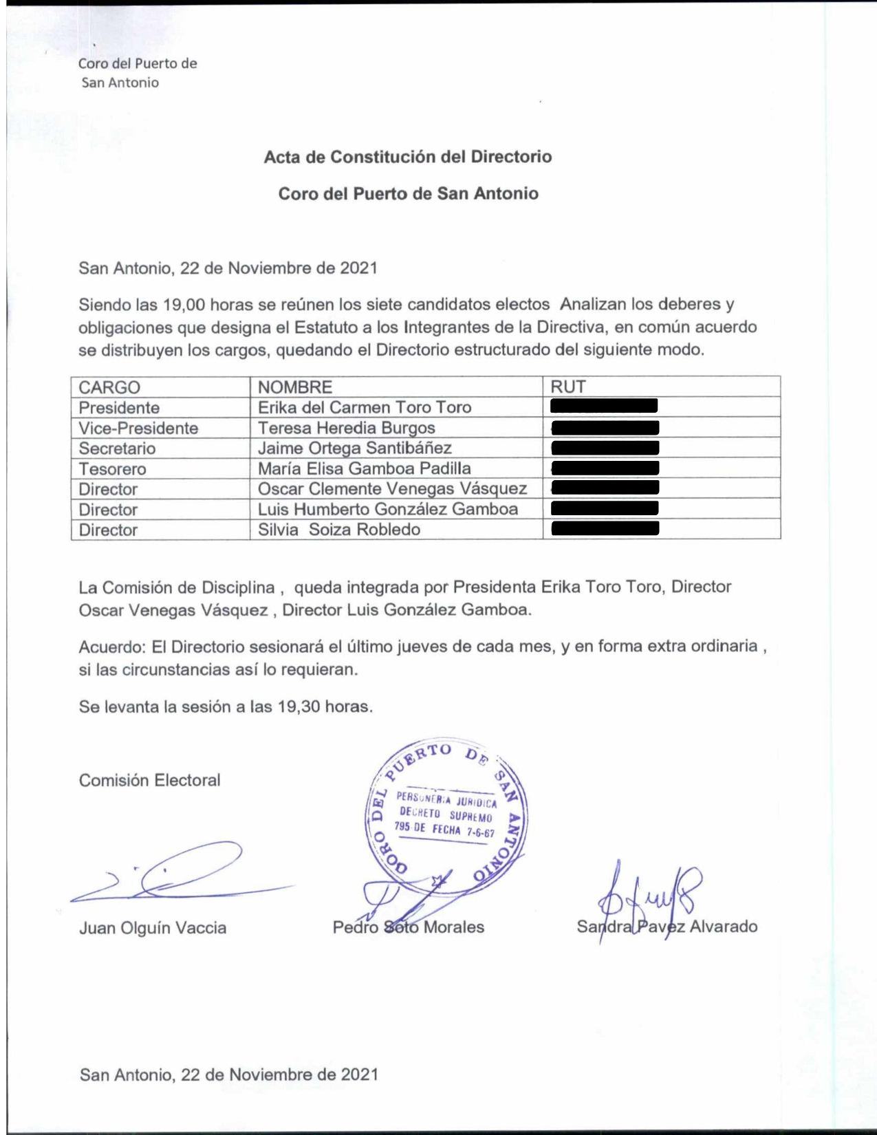 Acta de elección "ELECCIÓN CORO DEL PUERTO DE SAN ANTONIO"